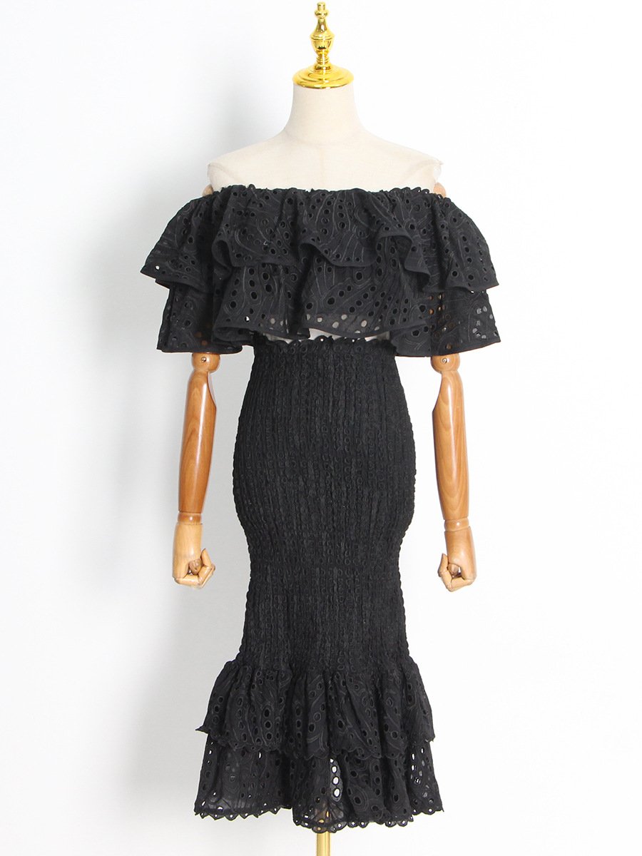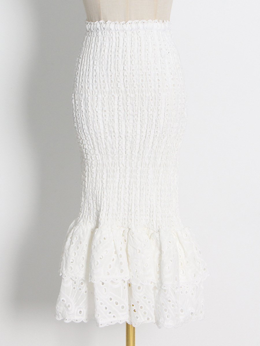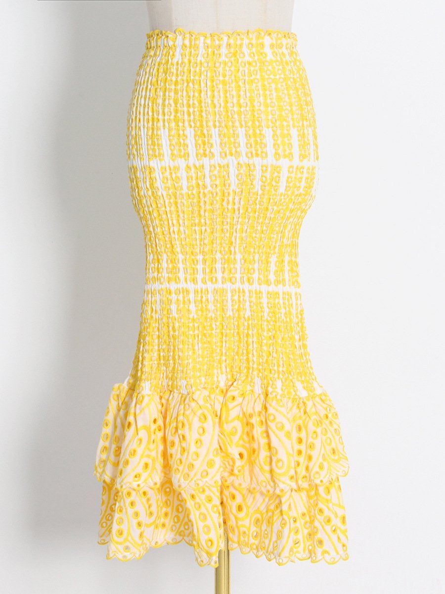 Embroidered shirt fishtail skirt set
