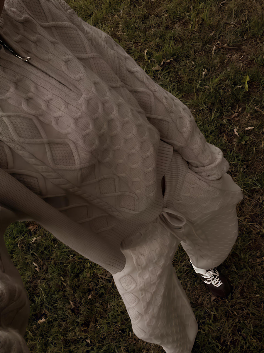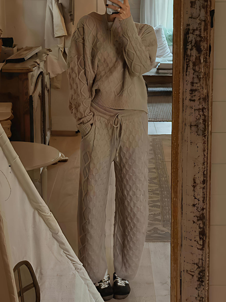 Half-zip Neck Cable Knit Sweater Two Pieces Set