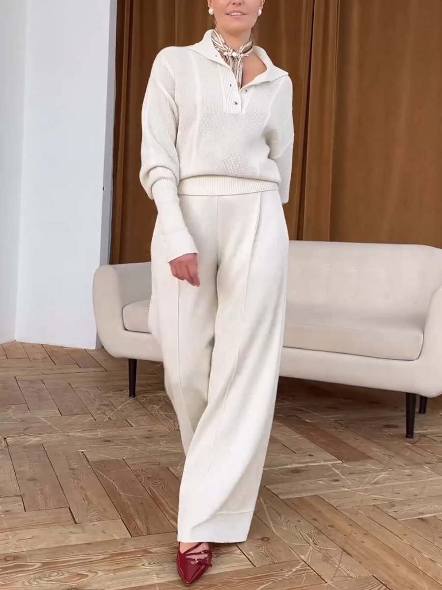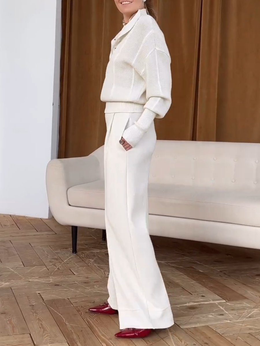 Effortlessly elevate your style with our Women's Comfort Knit Button Two-Piece Suit. Made with a soft and cozy knit material, this suit offers comfort that lasts all day long. You'll love the relaxed fit and stylish button detailing, making this the perfect addition to your wardrobe.